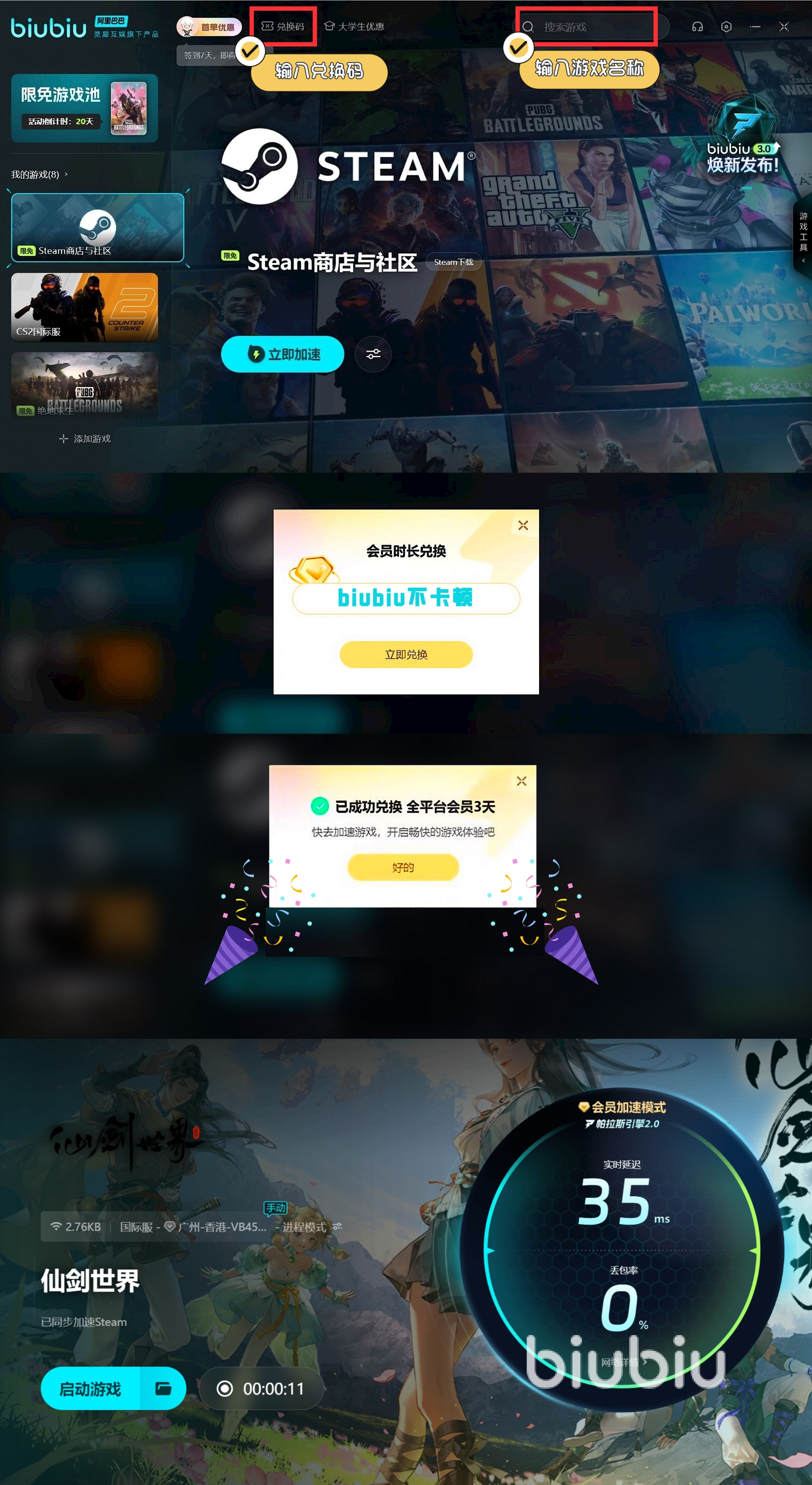 部分玩家下載以后游玩的過程中會明顯感覺到特別卡頓,尤其是跟其他人大世界聯(lián)機(jī)的時候,這很大概率是由于網(wǎng)絡(luò)連接不通順造成的,建議可以使用biubiu加速器來解決此項(xiàng)問題,并且新人在注冊后便獲3小時免費(fèi)加速,新老用戶均可使用兌換碼【biubiu不卡頓】可獲3天免費(fèi)的使用權(quán)哦!