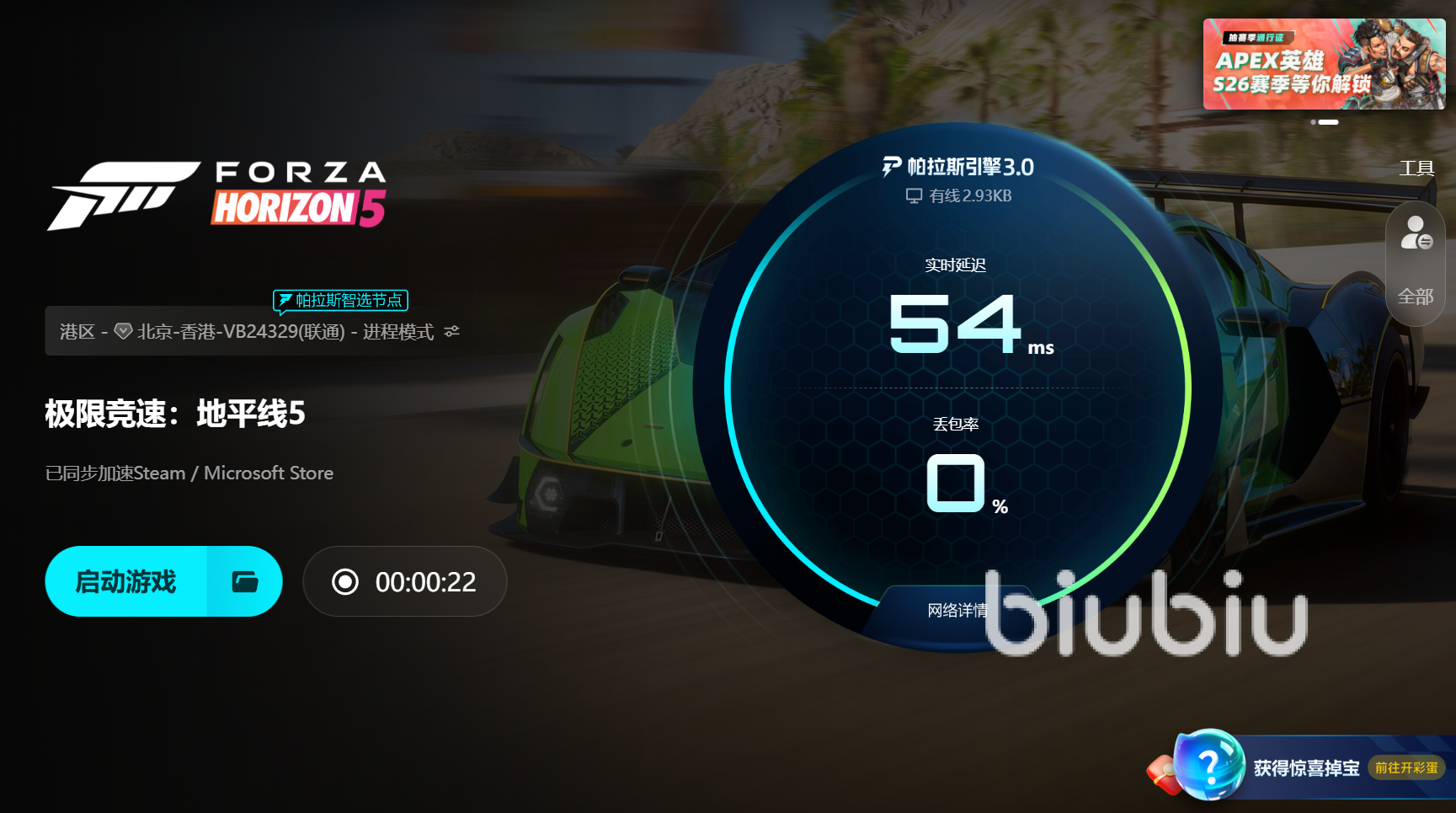 如果《地平線5》總是進(jìn)不去,讓你倍感頭疼,在進(jìn)入游戲之前,最好先啟動(dòng)biubiu加速器。借助它,你能擁有更穩(wěn)定的網(wǎng)絡(luò)、更低的延遲,從而迅速進(jìn)入游戲世界。專注于賽車競(jìng)速與探索冒險(xiǎn),而不是一次次卡在啟動(dòng)界面。讓你有更好體驗(yàn)不在煩惱。