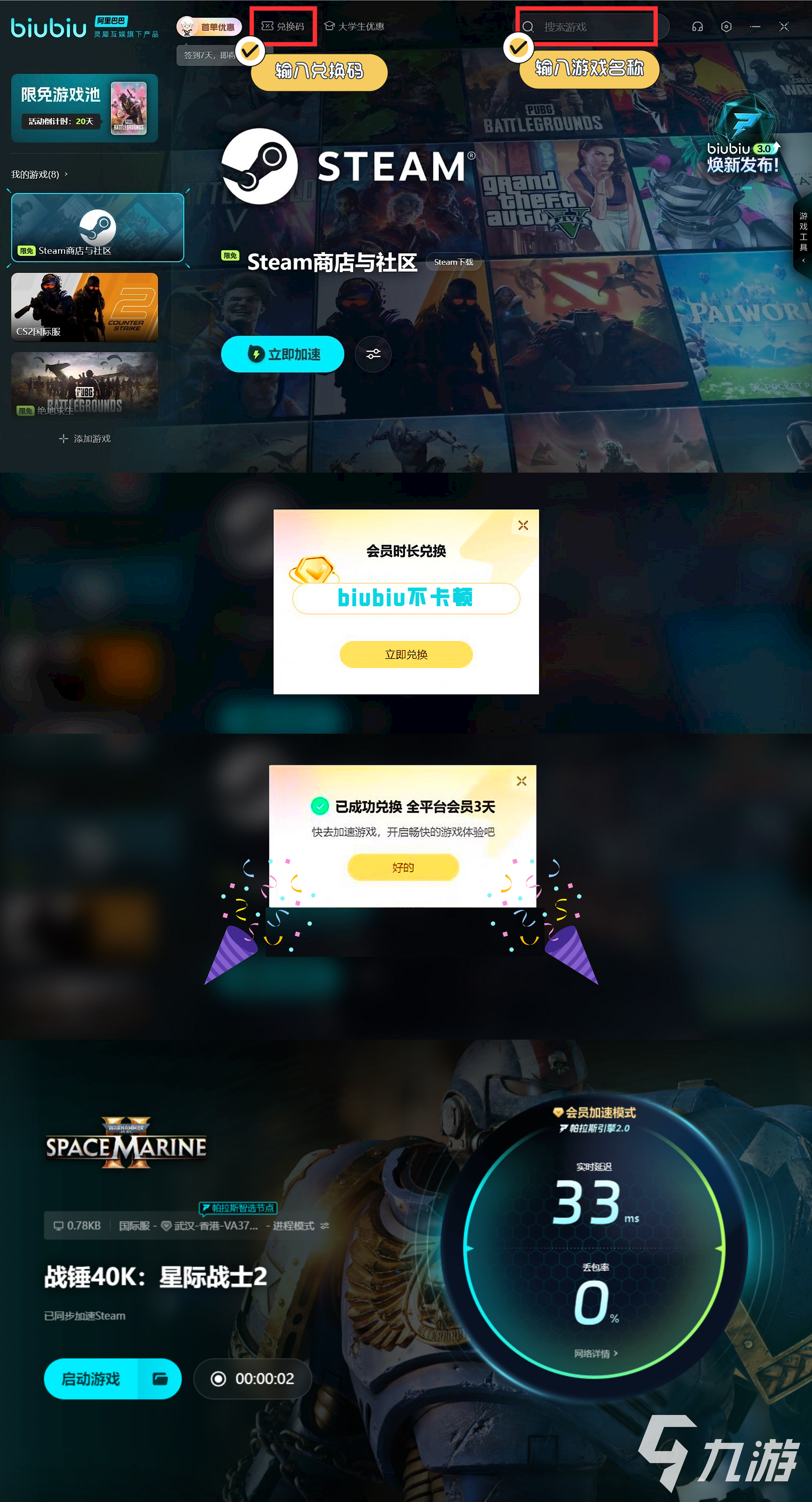 現(xiàn)在biubiu新用戶可是直接就得到免費(fèi)的24小時(shí)使用時(shí)間哦,還有個(gè)兌換碼【biubiu不卡頓】可以用,兌換獲得額外的72小時(shí)加速時(shí)間,新人可以用到96小時(shí),而老用戶則是可以用兌換的72小時(shí)哦。