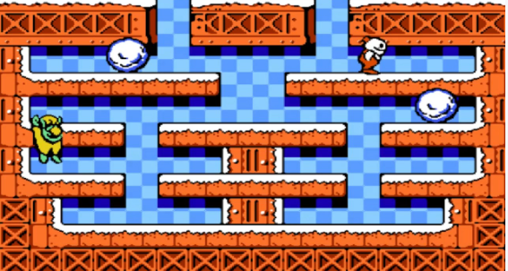 雪人兄弟也是款雙人聯(lián)合一起玩的同屏挑戰(zhàn)游戲,兩個玩家會化身紅藍小雪人在迷宮地圖上戰(zhàn)斗冒險,通過丟雪球的方式就可以埋葬怪物然后推雪球,很有趣的消滅怪物的方式讓本作魅力四射,每隔五關(guān)會遇到一個造型萌系的BOSS,千奇百怪的通關(guān)方式和各種各樣的輔助道具會讓雪人行動更靈活。