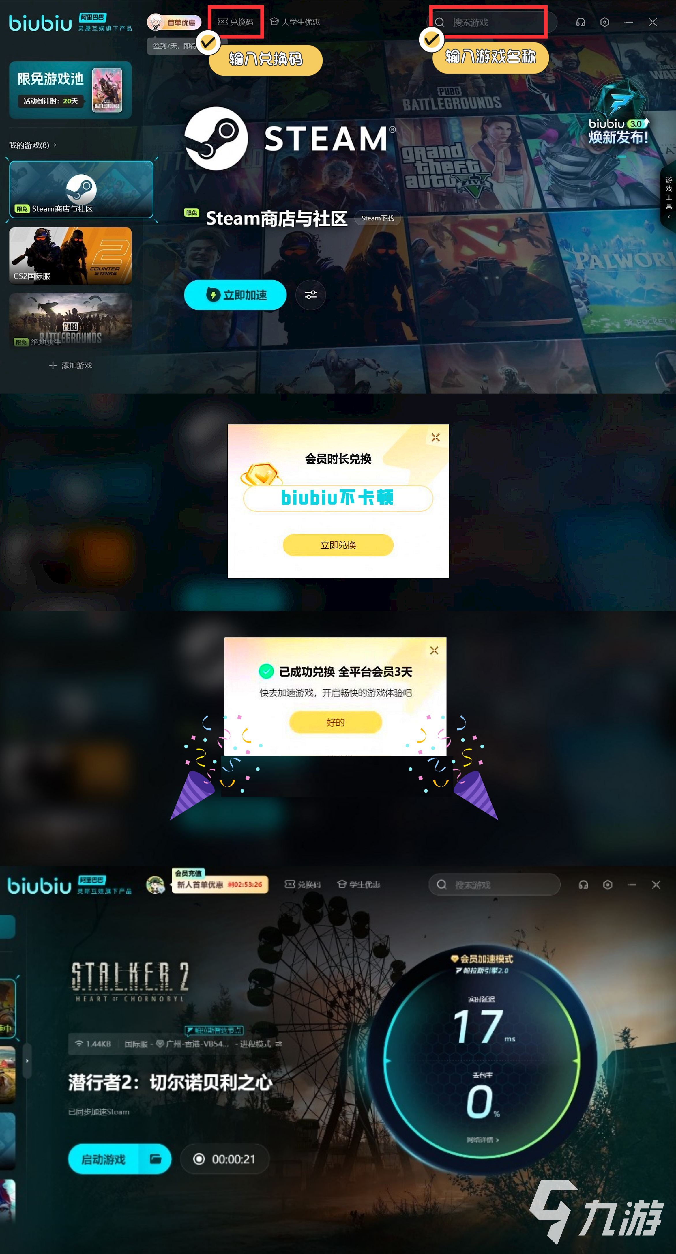 而且好消息是,biubiu加速器還有新人的福利活動(dòng),現(xiàn)在新人用戶注冊(cè)登錄可享免費(fèi)24h加速時(shí)長(zhǎng)。后續(xù)新用戶或者老用戶,均使用以下兌換碼【biubiu不卡頓】,還能獲3天免費(fèi)加速時(shí)長(zhǎng),小伙伴們可以爽玩加速,如果覺(jué)得加速效果還不錯(cuò),再來(lái)優(yōu)惠充值也不遲。