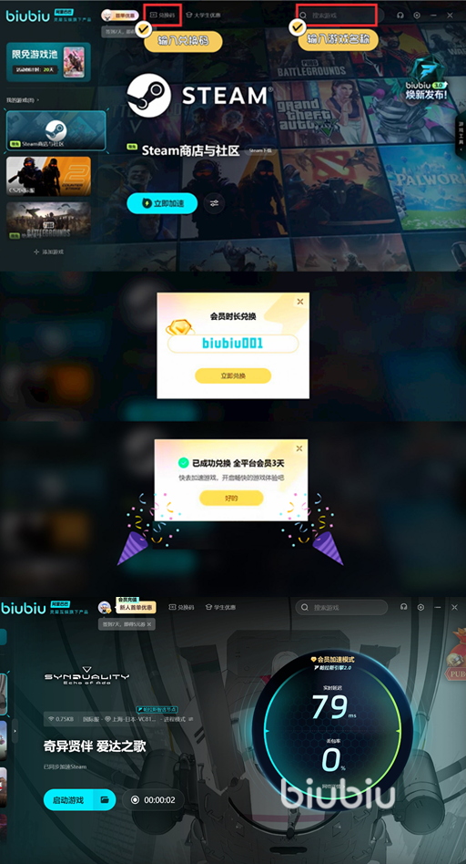 如果你在找一種能讓游戲體驗(yàn)更加流暢的加速器,biubiu加速器絕對(duì)是個(gè)不錯(cuò)的選擇。現(xiàn)在新用戶注冊(cè)立馬就能拿到3小時(shí)的免費(fèi)加速體驗(yàn),注冊(cè)之后就能感受到網(wǎng)絡(luò)更加穩(wěn)定的優(yōu)勢(shì)。更棒的是,還可以通過(guò)兌換碼【biubiu001】免費(fèi)獲得72小時(shí)的加速時(shí)長(zhǎng)。新注冊(cè)的玩家福利更是豐富,疊加起來(lái)可以享受75小時(shí)的加速服務(wù)。不過(guò)需要提醒一下,老用戶只能夠使用兌換碼,無(wú)法享受累計(jì)福利哦。
