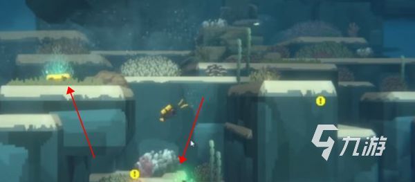 這些東西全部都在該海流涌動(dòng)處的右側(cè),可以明顯看得到,只需要往右邊方向稍微再走一段就能找到啦,最難找的就是計(jì)算機(jī)芯片了,它在該位置右側(cè)的一個(gè)洞穴里面,在最下邊就可以看到了。