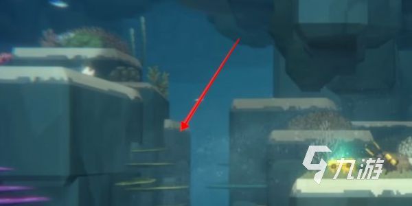 確定網(wǎng)絡(luò)情況良好之后就可以去展開搜尋了,首先大家需要先到海中,然后沿著海洞的位置向下游走,在下游會(huì)看到一個(gè)分叉路口,在這個(gè)岔路口選擇往右手的方向繼續(xù)游,大概只要游個(gè)60米左右,在這里就會(huì)看到一個(gè)很窄的道路。