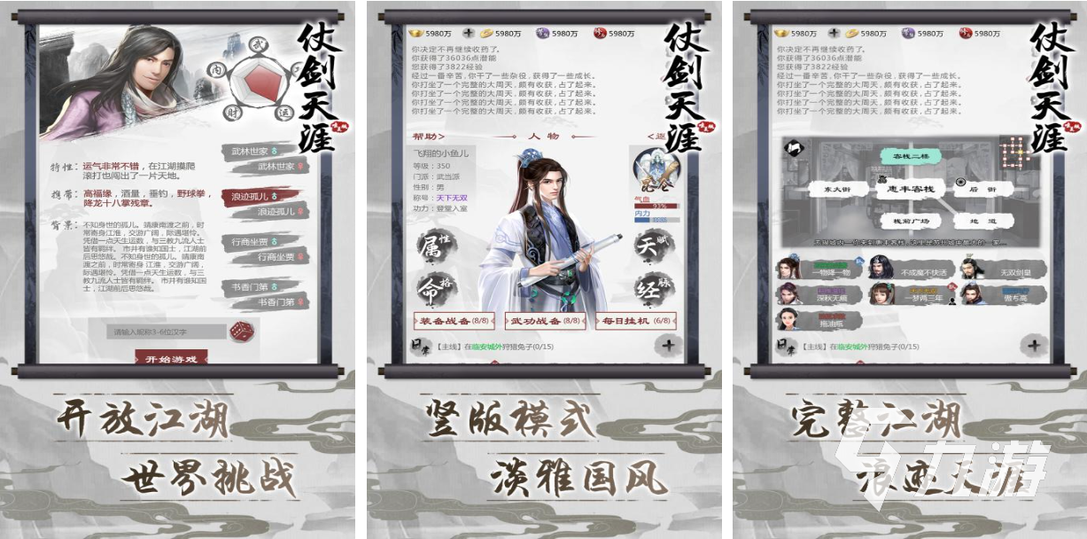 這款文字放置類游戲有著水墨風格的背景,跌宕起伏的武俠劇情讓玩家深陷其中,玩家可以用掛機的方式做主線、支線的任務,游戲的亮點呈現(xiàn)在多樣化的互動劇情,你可以跟任何一個NPC進行互動或者聊天,玩家可以盡情體驗古代社會的風土人情,也可以通過互動的方式了解每個NPC的過往,這樣的高自由度文字游戲更能讓玩家沉醉。