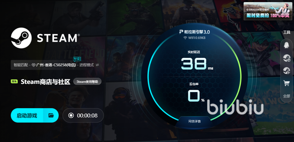 推薦大家使用biubiu,具有較為強大的提速效果,而且擁有智能功能,能夠直接優(yōu)化所連接的輸出通道。如果玩家遇到了線路波動的情況,那么可以智能切換適合的通道,無需大家手動操作,因此用起來是比較方便的,再加上可以加速的對象多,所以后續(xù)大家玩其他作品也都可以順利用這個平臺。