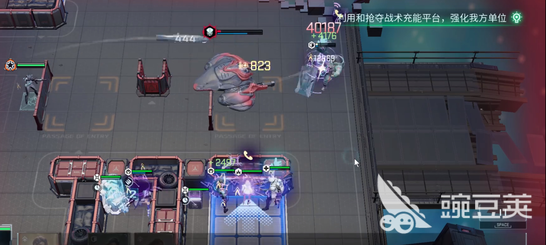 最后是90秒之后的爆發(fā)輸出階段,當(dāng)boss的護(hù)盾破裂觸發(fā)“弱點(diǎn)擊破”的時候,這個時候boss會眩暈五秒,承傷提升50%,就可以全員集火boss了。當(dāng)boss護(hù)盾再生之后就可以重復(fù)部署“重盾嘲諷和側(cè)擊累積”的循環(huán),還可以加入塞謬爾激活右側(cè)的EMP陷阱,會產(chǎn)生額外的20%護(hù)盾傷害值。