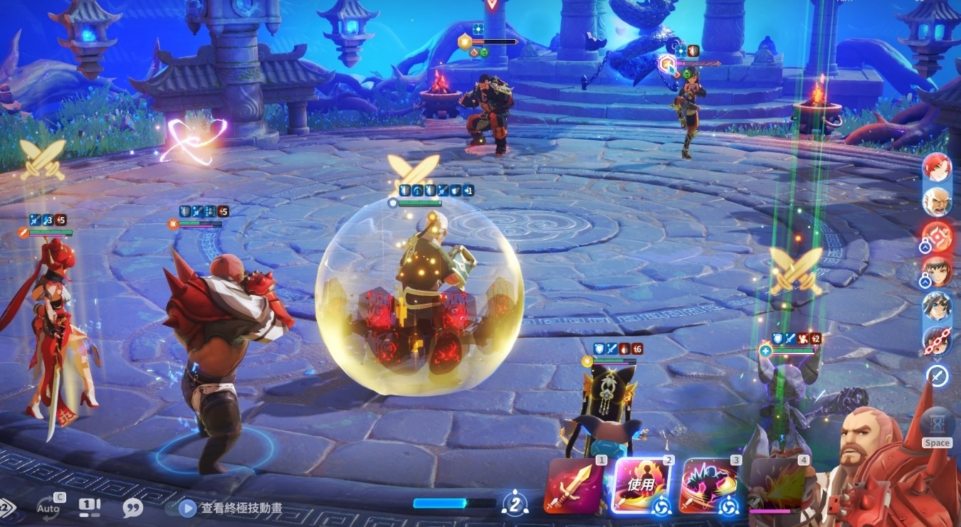 游戲主打快節(jié)奏戰(zhàn)斗,為了避免角色成長(zhǎng)過(guò)程中繁瑣的培養(yǎng)系統(tǒng),游戲支持角色共享等級(jí)、裝備。游戲的戰(zhàn)斗是自動(dòng)鎖定的,點(diǎn)擊角色下方的頭像或者使用快捷鍵可以切換角色,角色有6種屬性劃分,不同的boss有著不同的弱點(diǎn),因此后期要針對(duì)boss弱點(diǎn)來(lái)切換隊(duì)伍構(gòu)成。