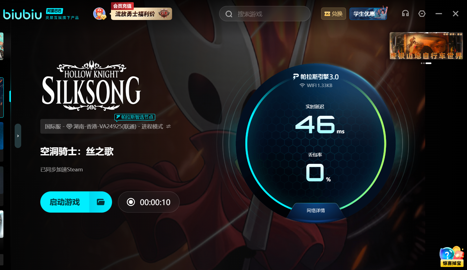 以上就是對空洞騎士絲之歌延遲丟包應(yīng)對方法的介紹了,作為一款備受期待的獨立游戲,其精美的畫面和深邃的劇情吸引了大量玩家。然而,網(wǎng)絡(luò)問題可能會影響玩家的登錄和游玩體驗。通過使用biubiu加速器,玩家可以輕松解決延遲、丟包等網(wǎng)絡(luò)問題,確保游戲運行的流暢性。