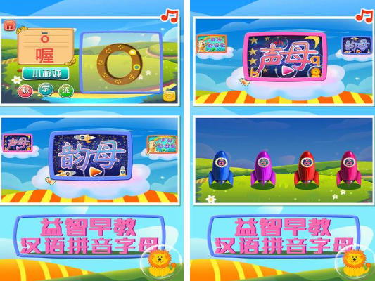 這款游戲就好像是點讀復(fù)讀機一樣,可以反復(fù)的讓孩子聽拼音發(fā)音,而且還會把字母直接編成了歌謠,每一首歌謠都有對應(yīng)的音樂節(jié)奏,孩子跟著讀就會把所有的知識點全部都記住。拼音基礎(chǔ)內(nèi)容設(shè)計的比較豐富,而且操作很簡單,就算小朋友獨自一個人也可以玩耍。這款游戲很適合作用于早教,可以發(fā)揮啟蒙的效果。