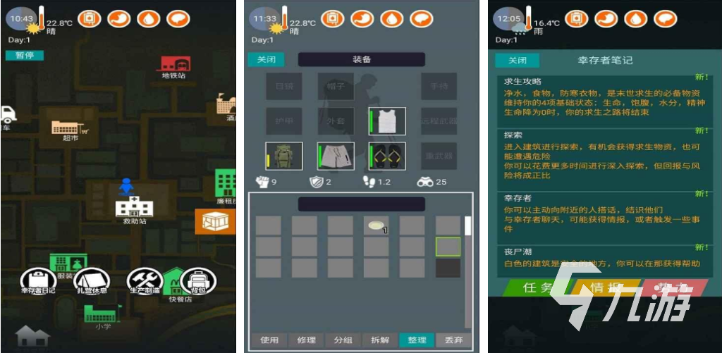 這是一個需要在末日世界求生的游戲,玩家在游戲中沒有其他的隊友,有一只狗在旁陪伴,需要在這個資源緊缺的末日世界收集各種裝備,并且時刻注意自己的身體狀況,不同的場所有著不同的危險等級,玩家可以根據(jù)自己的能力進入到這些場所中進行挑戰(zhàn),游戲比較注重文字,在畫面的設(shè)計上屬于比較簡單的手繪風(fēng)格,可以減輕玩家的恐懼感。