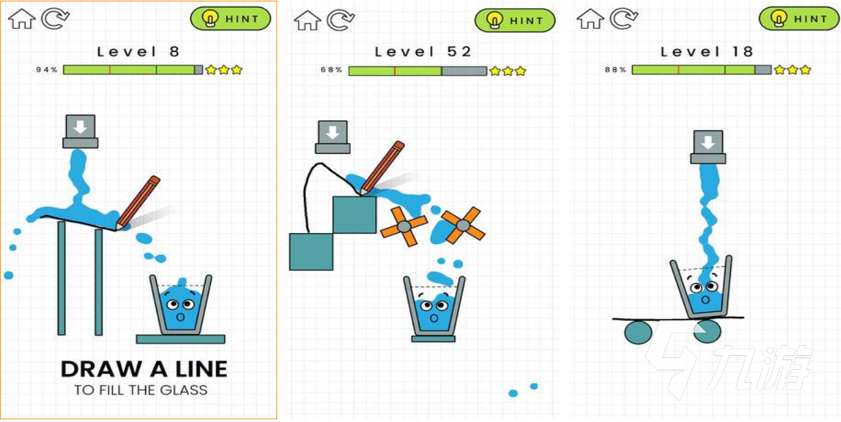 劃線接水是款非常有趣的物理劃線題材手游,玩家的任務(wù)就是用手指劃出一條線讓杯子盛滿水,玩家需要仔細(xì)觀察地理位置才能正確引導(dǎo)水源,精心設(shè)計(jì)的關(guān)卡和別具一格的玩法讓人樂在其中,遵循物理規(guī)律的操作方式讓本作的硬核程度更上一層樓,游戲的難度也隨著關(guān)卡進(jìn)行而不斷增強(qiáng),智力與觀察力的雙重考驗(yàn)讓玩家欲罷不能。