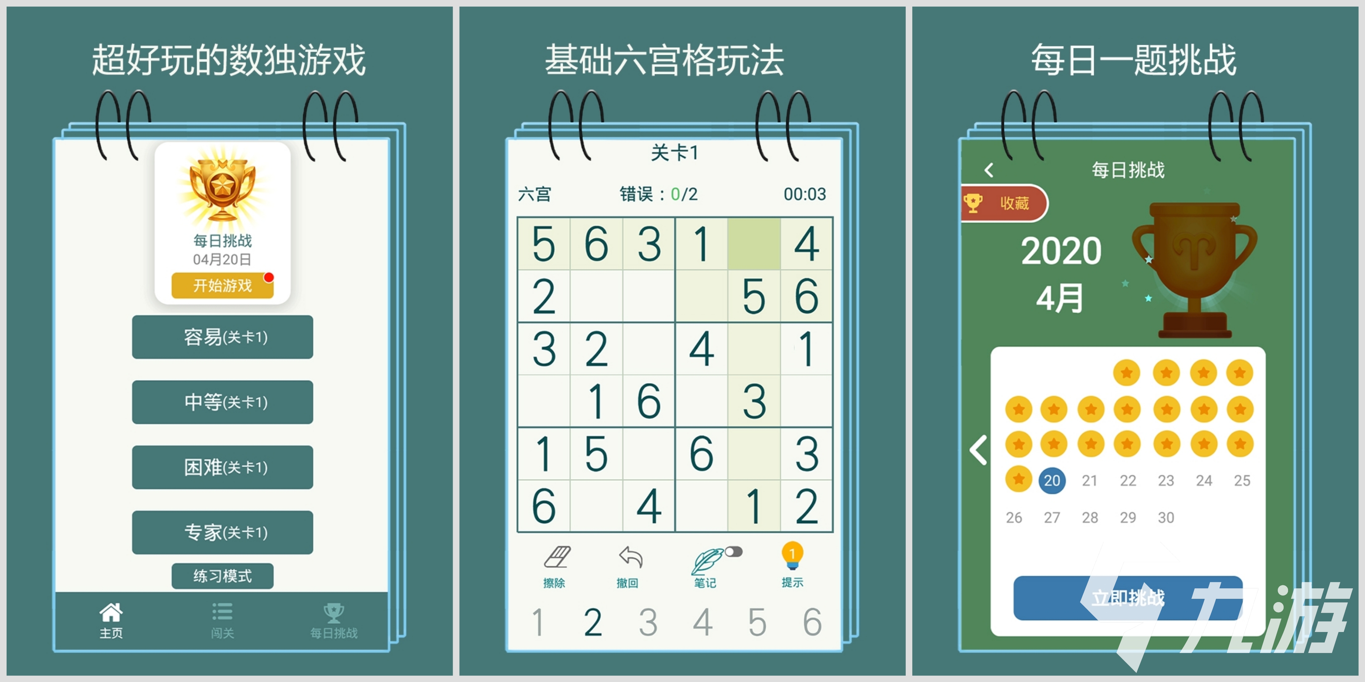 《數(shù)獨九宮格》是一款邏輯性非常強的數(shù)字益智游戲,1-9的數(shù)字雖簡單易識,但放在九宮格內(nèi),以游戲內(nèi)的規(guī)則做要求,一切都將發(fā)生改變,游戲?qū)O大地開發(fā)你的邏輯推理能力與算數(shù)才能,當(dāng)然,并不是所有關(guān)卡都如此魔鬼難度,完成新手簡單關(guān)卡你就能逐漸上手了哦。