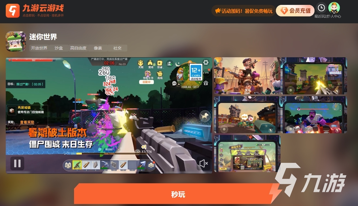 而小編建議大家去通過九游云游戲來幫助自己,注意也是以為其最大的特點(diǎn)就是讓大家無需下載游戲,只需在九游平臺(tái)上點(diǎn)擊“秒玩”按鈕,即可立即進(jìn)入體驗(yàn),不僅省去了玩家漫長(zhǎng)的下載等待時(shí)間,還避免了對(duì)設(shè)備存儲(chǔ)的占用,讓大家能快速的進(jìn)入其中。