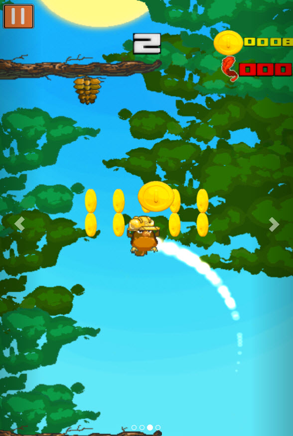 《旋轉(zhuǎn)老鷹》這是一只笨拙拙只會(huì)旋轉(zhuǎn)飛行的老鷹,尤其把一個(gè)枝繁葉茂的大樹作為了背景,玩家要操縱著老鷹旋轉(zhuǎn)式的向上升空,在途中還需要吃到金幣以及鳥蛋,為老鷹補(bǔ)充體力,這部作品的難點(diǎn)玩家要同時(shí)兼具著旋轉(zhuǎn)操控的特性,以及障礙物和收集要素的位置,倘若在上升中頂?shù)綐涓桑銜?huì)被樹上的小松鼠嘲諷哦。