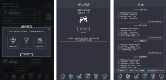 這是一款以文字作為核心的單機掛機類型的游戲,目標就是選一個自己認為賺錢的項目,慢慢的做大生意。例如你打算開一個加工廠,然后就可以通過掛機的方法自動的賺取金幣升級產業(yè),然后解鎖新的業(yè)務,一步一步就可以成為土豪。整個游戲是選擇純文字的操作上手真的比較快,在經營的過程中偶爾會遇到一些小難題,你就需要通過動腦子的方法,然后去調整策略,整個游戲的代入感還是比較強的。
