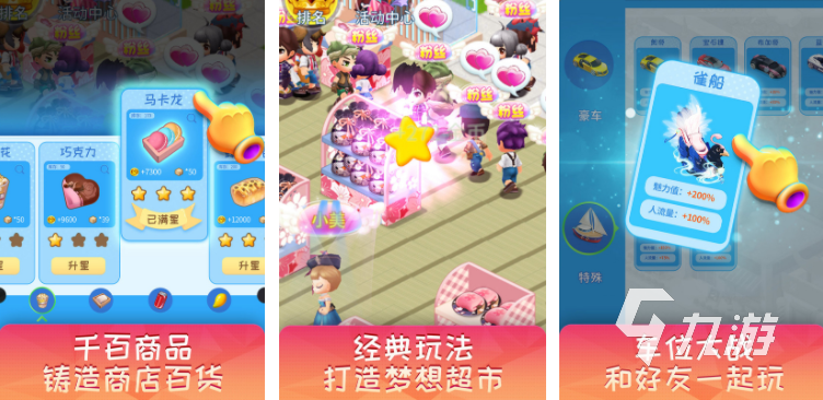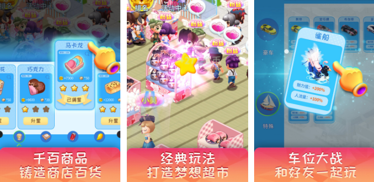 夢(mèng)想超市設(shè)定了一個(gè)卡通場景,在這里玩家經(jīng)營的不再是一個(gè)小超市,而是能打造一個(gè)專屬于自己的商業(yè)帝國,天窗開啟之后,可以先去進(jìn)行店鋪的自由裝飾,接著就可以在游戲里選購上百上千種貨品,貨品選擇完成之后,就可以在游戲里開啟售賣,隨著在游戲里獲取資金,還可以提升這些貨品的等級(jí),這樣品質(zhì)更高能,售賣的價(jià)格也會(huì)更高。
