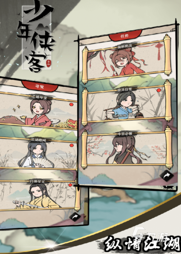 少年俠客中的每一名俠客都有自己的獨(dú)特屬性,玩家應(yīng)該盡量培養(yǎng)不同的俠客,是他們的基礎(chǔ)屬性和幸運(yùn)屬性相結(jié)合,組建一個(gè)非常強(qiáng)大的俠客隊(duì)伍,逐漸探索宗門寶藏、擂臺(tái)挑戰(zhàn)、一統(tǒng)江湖等玩法。