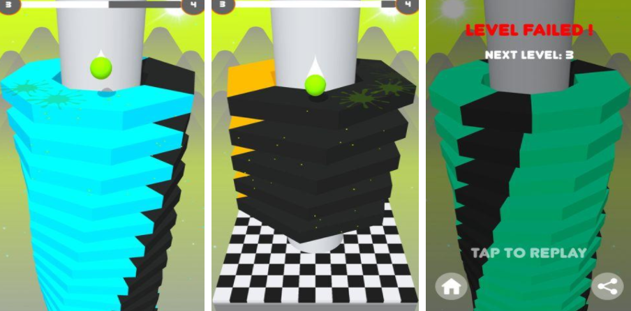 超能彈力球是一個操作非常簡單的游戲,挑戰(zhàn)開啟之后會有一個圓形的柱子,在柱子上會有大量的平臺,平臺上色彩面積比較大的是固定平臺,可以讓圓球在游戲里不斷跳躍,每一個平臺上還會有空缺,需要借助這些平臺,讓小球順利彈跳到下一個平臺,但需要注意的是,每一個平臺上還會有少量的彩色,一旦觸碰到這些顏色,游戲就會失敗,玩家可以在游戲里通過不斷滑動屏幕,控制圓柱的方向。