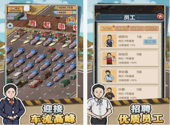 通過(guò)模擬高速收費(fèi)站這種現(xiàn)實(shí)生活中,比較常見(jiàn)的收費(fèi)方式,你將通過(guò)經(jīng)營(yíng)來(lái)成為高速大亨。整體采用的是特別可愛(ài)的風(fēng)格,里面還有不同類型的車輛,要利用不斷升級(jí)各種設(shè)備的方式,以及解鎖車輛,使自己的高速收費(fèi)站,每天都會(huì)有很多的車輛,一步一步的壯大。每次解鎖了設(shè)施以后,使收費(fèi)的效率得到提高,即使是在高峰時(shí)期的時(shí)候,也能給客戶們提供非常優(yōu)質(zhì)的服務(wù)。