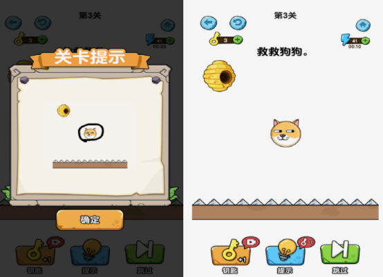 里面除了有一只長(zhǎng)相特別可愛(ài)的小狗,也會(huì)遇到一只會(huì)蟄狗狗的蜜蜂,通過(guò)一筆畫線的方式,形成了形狀以后營(yíng)救狗狗,避免被蜜蜂叮,也是屬于玩法特別的有趣,需要在玩的時(shí)候發(fā)揮完整的想象力,才能在指定的關(guān)卡當(dāng)中完成任務(wù)的。如果并不知道如何劃線,才能拯救狗狗的情況下,還有相應(yīng)的提示功能或者是使用鑰匙跳過(guò)。