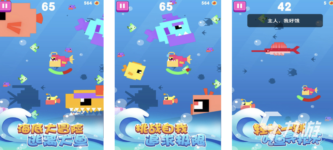 作為一款同樣操作簡(jiǎn)單的大魚小魚大作戰(zhàn),玩家的樂(lè)趣更多來(lái)自于魚兒的成長(zhǎng)變化。玩家滑動(dòng)屏幕便可以使得魚兒前進(jìn),手指停在屏幕時(shí),魚兒同時(shí)停止,而玩家的目標(biāo)是使得魚兒吃下更多的正確的食物,使得魚兒快快長(zhǎng)大,成為一條大魚,也就是說(shuō)這款游戲經(jīng)常被調(diào)侃成魚兒的成長(zhǎng)史哈,同時(shí),玩家需要避開害中危險(xiǎn)的魚類,防止被吞下哈。