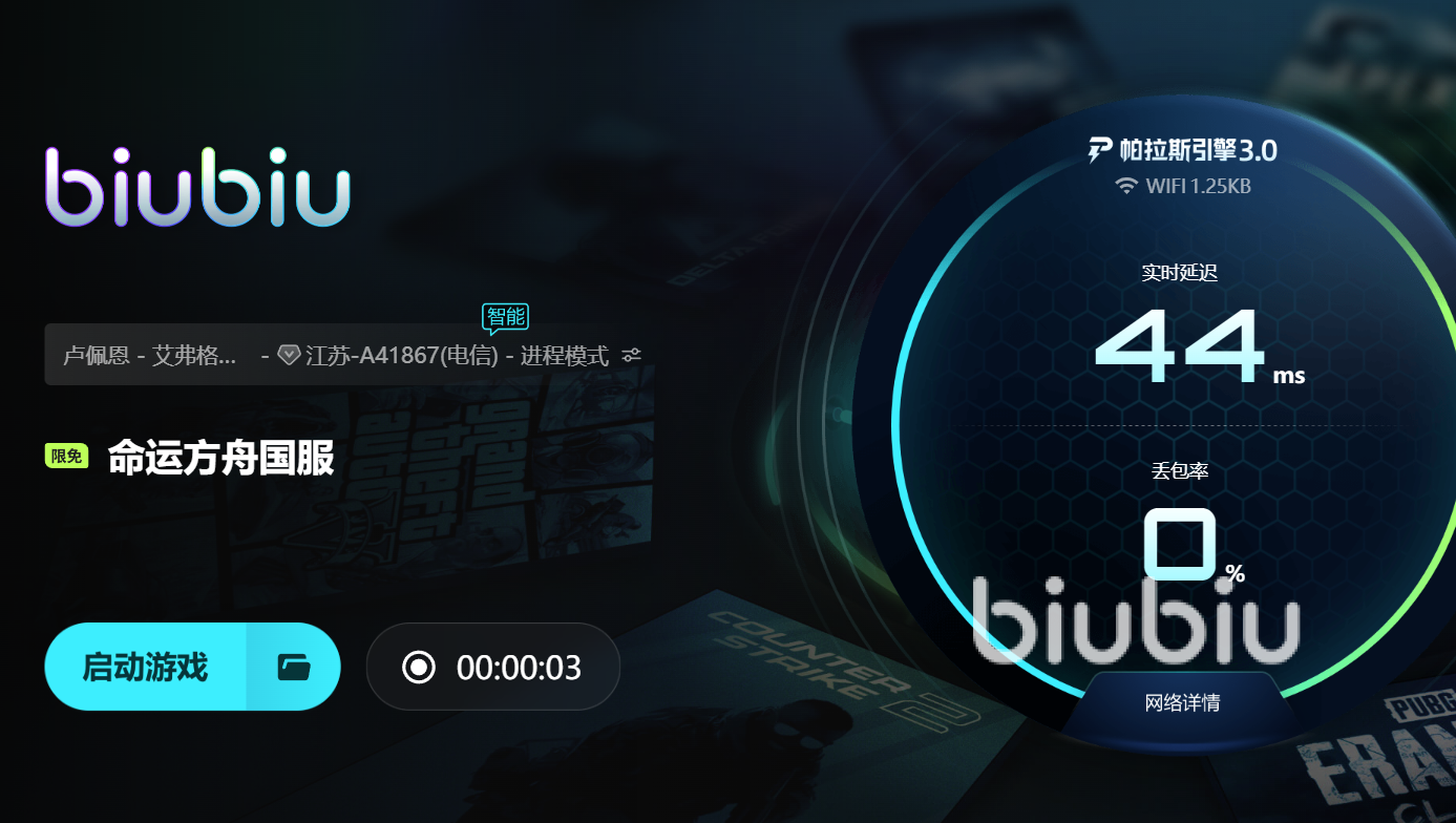 如果在完成上述三個步驟后,掉幀問題仍然沒能得到明顯改善,那么就可能是網(wǎng)絡(luò)狀況影響了游戲運行,《命運方舟》部分服務(wù)器與國內(nèi)玩家網(wǎng)絡(luò)存在物理距離,數(shù)據(jù)傳輸時容易出現(xiàn)延遲過高等問題,就會導(dǎo)致畫面卡頓掉幀這些現(xiàn)象的出現(xiàn),biubiu加速器則能有效改善上述問題,它引入帕拉斯引擎3.0,還與冠軍選手Aixleft共同打造,新用戶注冊這個加速器平臺可以得到24小時免費時長,輸入【biubiu不卡頓】還可以兌換72小時免費時長,玩家可借助它的加速功能,徹底解決網(wǎng)絡(luò)相關(guān)的掉幀問題。