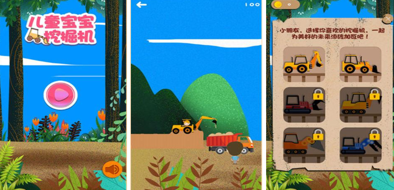 兒童寶寶挖掘機(jī)里的挖掘機(jī)特別可愛,駕駛室里還坐著小小的駕駛員,游戲場景也很有趣,有滿是沙子的沙地、堆滿石塊的工地,還有能挖到礦石的礦山,小朋友玩的時候只要點擊屏幕上的按鈕就能控制挖掘機(jī),按前進(jìn)按鈕挖掘機(jī)就會慢慢往前開,按轉(zhuǎn)向按鈕就能調(diào)整方向,按機(jī)械臂按鈕機(jī)械臂就會升起來或者降下去,按鏟斗按鈕鏟斗就能張開或者合上,特別好操作。