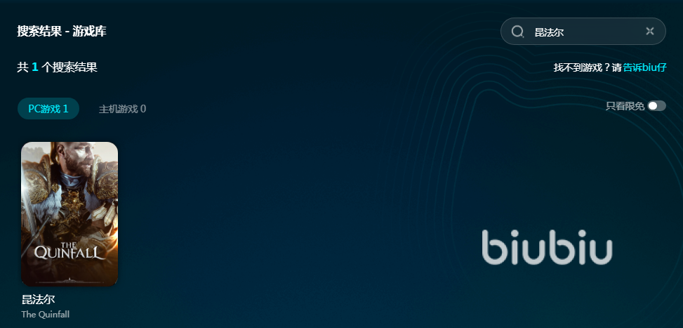 biubiu啟動(dòng)方便,加速范圍又廣,支持的游戲特別多,除了昆法爾以外大家還能在里面找到上萬款加速資源。平臺(tái)還開放了一個(gè)限免游戲池,只要是游戲池里的資源都能免費(fèi)加速。大家如果找不到自己玩的游戲,可以跟biu仔說,系統(tǒng)會(huì)盡快將資源添加到平臺(tái)里。