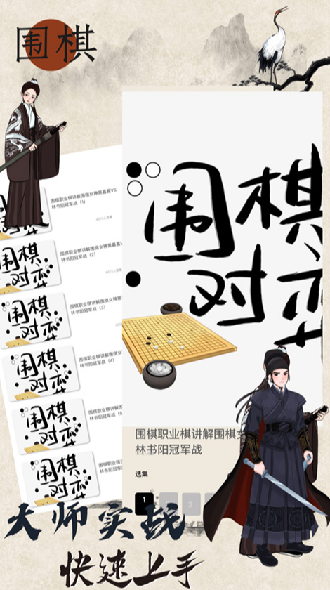 圍棋是種不容易上手的棋類,不少人剛接觸時不知道該怎么玩,那可以試試這款歡樂圍棋。游戲界面是傳統(tǒng)的水墨樣子,喜歡國風(fēng)的玩家會很感興趣,它還帶了好幾種教程,能幫玩家快點學(xué)會圍棋規(guī)則。學(xué)完教程后,就能和其他喜歡圍棋的人在線匹配對弈了,想快點提升圍棋水平,靠它就能實現(xiàn)。