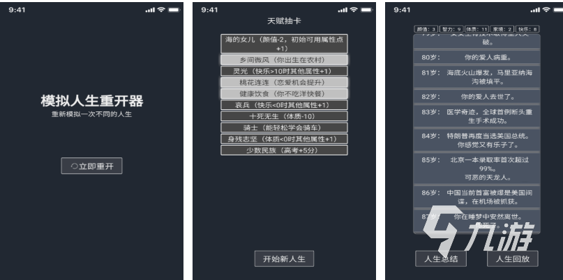 這款游戲作品能讓玩家不斷輪回感受不同人生,每次輪回都會(huì)重生在不同的世界感受生活,自由塑造人生走向的游戲設(shè)定代入感更強(qiáng),文字互動(dòng)的操作系統(tǒng)則更加簡(jiǎn)便易懂,上手輕松可快速開啟全新的人生,當(dāng)生命走到終點(diǎn)還可以進(jìn)行回放類似回光返照,超有代入感的人生模擬玩法等待著玩家嘗試。