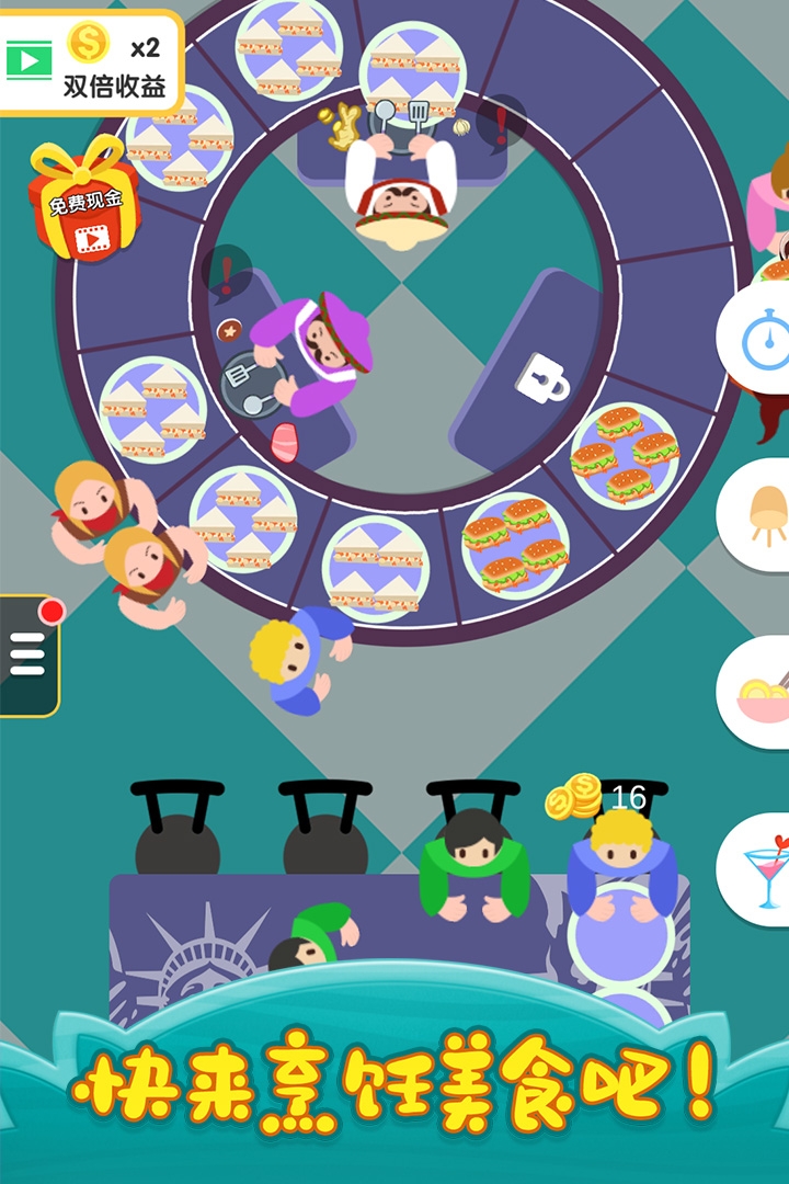 在《烹飪王國(guó)》中玩家將進(jìn)入烹飪的王國(guó)之中。其中有著許多入口即化的美食在等著你烹飪制作,并且你還可以招攬?jiān)S多大廚來(lái)給你炒菜。另外,別忘了給你的餐廳進(jìn)行時(shí)尚裝修,不然很難有很多顧客前來(lái)用餐的。有趣的是,你還可以在經(jīng)營(yíng)的過(guò)程中不斷解鎖更多的美味菜肴,以及留住更多的顧客。