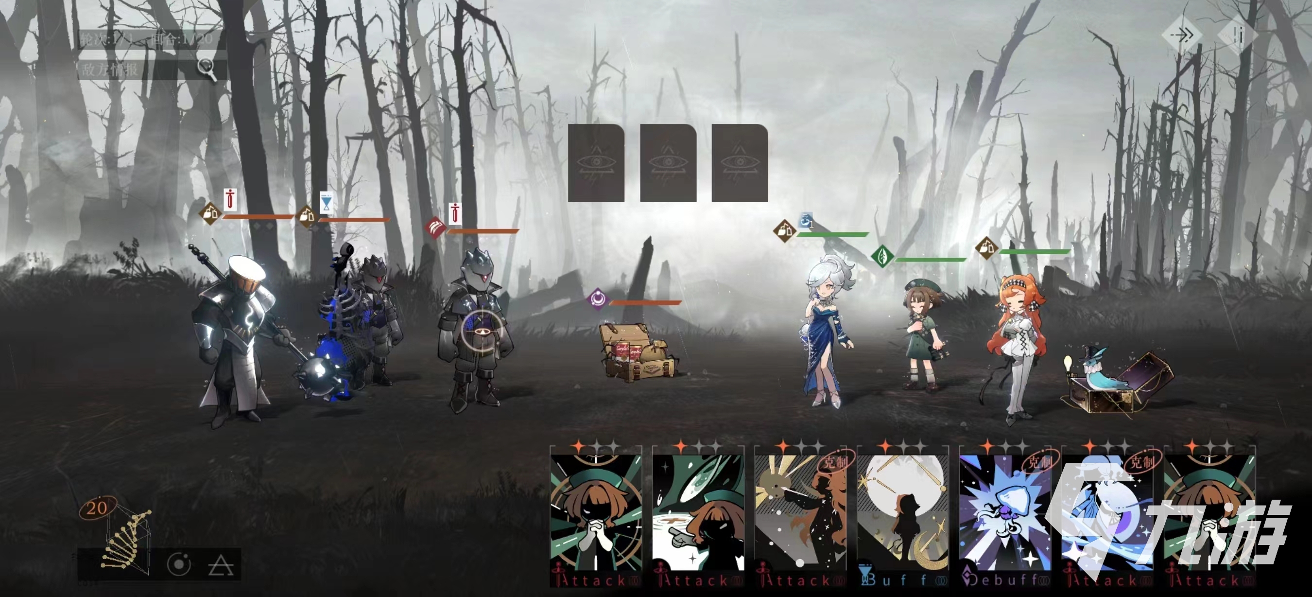 每回合的行動次數(shù)有限,隨著上陣角色數(shù)量控制在1-3次,移動卡牌、使用卡牌都會消耗一次機會哦。點擊敵方單位后,可以看到卡牌屬性是否克制,這是戰(zhàn)斗中常用的技巧,盡量用克制效果攻擊敵人效果更顯著。