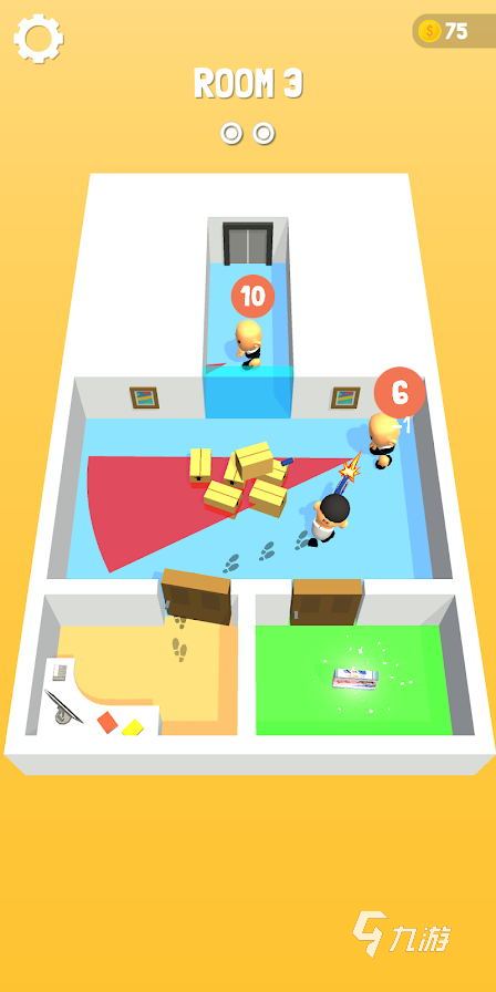 《光頭尿急》在推箱子的基礎上,游戲中又加入了迷宮式的探索玩法,玩家在這里需要絞盡腦汁,幫助人物以最短的捷徑找到廁所,在地圖中加入阻擋的大門,都具備著不確定性的隨機元素,玩家可以進行推、拉等形式,在房間中進行游走探索,此外制作組又設計了一切迷霧重重的難題融入其中。