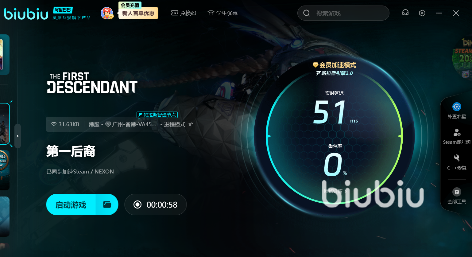 目前,新用戶注冊登錄biubiu加速器即可領(lǐng)取價值翻倍的加速福利,立即開通賬號瞬間激活24小時VIP會員免費暢用,黃金禮遇額外加碼,只需輸入【biubiu不掉線】,就能再獲得72小時黃金節(jié)點尊享時長,效果更優(yōu)、服務(wù)優(yōu)先級全面提升,這份疊加福利合計帶來96小時無界限游戲時間。