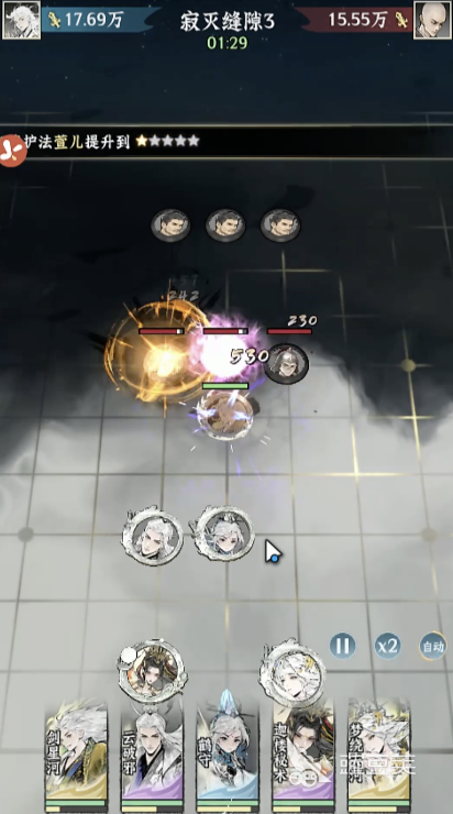 進入劍淵秘境后,主角可以御劍飛行,自由探索。按照主線任務(wù)的指引,清理各種被“寂滅”入侵的小怪。在秘境里的戰(zhàn)斗,是以棋子的形象來調(diào)整站位進行戰(zhàn)斗。最終的大Boss實力不容小覷,不過打敗它后爆出的東西很不錯。