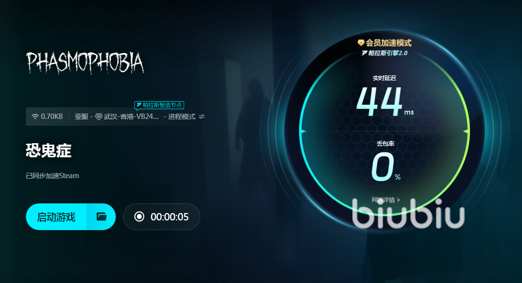 在恐鬼癥中,玩家需要利用游戲中的獵鬼道具去收集鬼魂信息,然后進(jìn)行鬼魂類別的判斷,通過定位鬼魂位置,收集證據(jù)等多種方式去完成任務(wù)。游戲擁有10多個不同的地點,涵蓋了農(nóng)舍、營地、房屋、監(jiān)獄、收容所等各種類型,從小型到大型等擁有盡有。每個地點都有獨特的布局和隱藏點。玩家還能選擇不同的難度,以及自定義難度進(jìn)行挑戰(zhàn)等,所以玩法很自由。為了能夠解決游戲運行過程中,尤其是在聯(lián)機(jī)時候的延時高卡頓等問題,小編推薦大家使用biubiu加速器。這是一款加速效果非常強(qiáng)悍的加速器軟件,目前更是推出了諸多福利,能夠讓用戶免費使用。