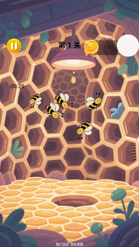 這是一款游戲畫風(fēng)呈現(xiàn)可愛的休閑娛樂游戲,玩家只需簡單對蜜蜂進(jìn)行操控,就能讓它在蜂窩之間可以自由穿梭,不碰到障礙物即可獲勝,而且游戲關(guān)卡設(shè)計多樣,合理的梯度化動畫難度設(shè)計,讓游戲由簡到難,并搭配夸張卻又活潑的音效效果,還增加了游戲的趣味性,也可以讓玩家全方位的集中注意力。
