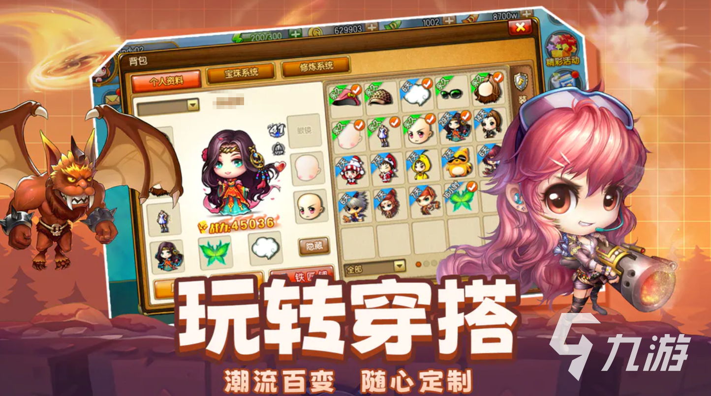 最后收集各種的穿搭還有神級的寵物,這都是所有游戲都有的,當(dāng)然在這個游戲當(dāng)中出現(xiàn)也是不違和的,二頭身的身材能夠適應(yīng)多種裝扮。