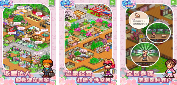 溫泉物語2以像素風詮釋溫泉旅館的溫馨,玩家需要充分發(fā)揮溫泉開發(fā)的玩法,而且不同泉質(zhì)的溫泉也會有各種不同的功效,硫磺泉富含礦物質(zhì)可舒緩肌肉疲勞,適合運動后游客體驗,溫泉池設(shè)計注重私密性與舒適度,公共溫泉池需劃分男女區(qū)域,配備木質(zhì)湯桶與休息石凳,私人溫泉池則搭配庭院景觀,讓游客在泡湯的同時欣賞自然美景。