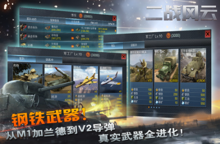 一款將坦克戰(zhàn)爭作為核心的射擊類型游戲,游戲會將二戰(zhàn)歷史背景真實的還原出來,你將成為一名將軍,帶領士兵去保衛(wèi)家園。游戲中還會融合建筑升級以及資源產出的玩法,甚至還會有軍團競技,你就可以自由的根據個人的喜好去完成布局。游戲涵蓋的就是海陸空三軍,里面還會有45種不同類型的航母以及坦克,會給你呈現出一個逼真的戰(zhàn)爭年代,感受一下戰(zhàn)火紛飛。