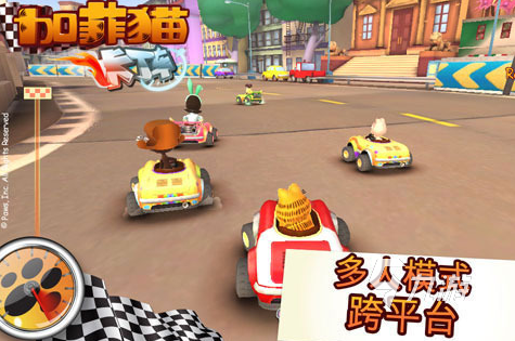 這是一款卡通類的競速娛樂手游。游戲以加菲貓動漫為背景,玩家能夠與各種經(jīng)典的動漫角色一起加入到這場刺激炫酷的卡丁車比賽當(dāng)中。游戲擁有雙人模式,玩家可以和家人朋友一起組隊(duì)競爭。玩家在競速的過程里還能夠收集加速道具和破壞道具等,巧妙地使用能讓自己成功甩掉其他玩家。喜歡的朋友不妨來加入這場萌趣十足的競速吧!