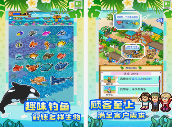 成為了游戲當(dāng)中的角色以后,既可完成對海島的經(jīng)營,也有很多可愛的小動物,甚至是人物,你需要為了滿足游客們旅行的目標(biāo),而打造出充滿著魅力的度假小島。無論是所建造的商店或者是設(shè)施,都可發(fā)揮自己的想象力,利用解鎖的多種海洋生物以后,也能幫助大家在度假的過程當(dāng)中,享受超多的海洋美景。還有超多的美食,從各方面都要以游客的需求為主。