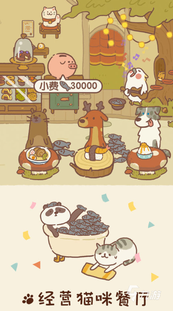 玩家還需要合理地規(guī)劃自己的餐廳去經(jīng)營項目來賺取大量的魚干,魚干就是玩家收益的主要來源,玩家可以利用魚干來購買各種類型的道具來幫助自己解鎖更多的有趣玩法和購買一些稀有的食材,游戲的畫風(fēng)非常地溫馨可愛,整個畫面的風(fēng)格采用的是治愈系的風(fēng)格,可以給體驗的玩家?guī)硪环N心靈的舒適感。