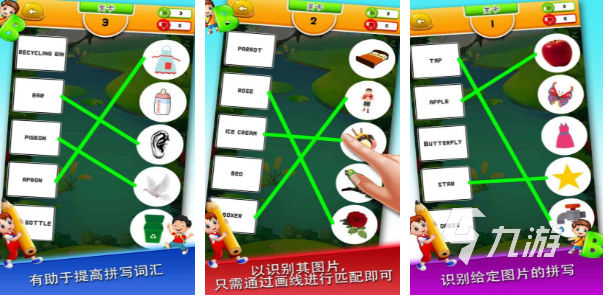 這款游戲就是旨在幫助玩家提高英語詞匯和語法認(rèn)知的經(jīng)典英語消除類游戲。游戲沒有什么復(fù)雜的規(guī)則,玩家需要對屏幕上的英文字母或單詞進(jìn)行消除,別看只是簡單消除游戲,每輪游戲難度逐漸增加,需要玩家集中精力和想象力來完成挑戰(zhàn)。同時,游戲采用了適合孩子學(xué)習(xí)的音樂,加深記憶力。