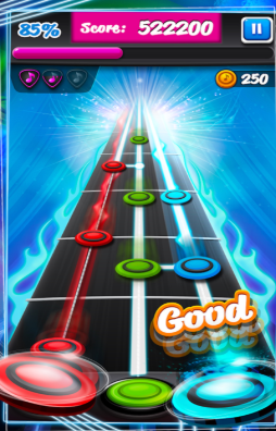 這是款模擬了吉他音效的節(jié)奏音樂游戲,憑借靈活的操作跟擬真的音效令音樂愛好者著迷,激動人心的配樂給玩家一種玩搖滾的既視感,豐富的互動任務(wù)和環(huán)繞音效也不會讓大家失望,科幻風(fēng)格的背景和下落式的音符也是亮點(diǎn),如果你也喜歡玩那種模擬吉他的特殊音游,那這款下落式音樂游戲可以試試看。