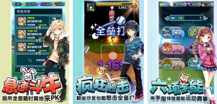 懶宅運動會特別適合不想出門又想動動手的人,打開游戲就是各種Q萌的角色,有扎著雙馬尾的萌妹,有戴眼鏡的陽光男孩,每個角色都穿著不同風(fēng)格的運動服,跑起來的時候頭發(fā)還會輕輕晃動,游戲里的六種運動項目操作都很簡單,棒球項目里只要看到球飛過來,快速點擊屏幕就能揮棒,要是打出全壘打角色會興奮地跳起來,屏幕上還會飄滿彩帶。