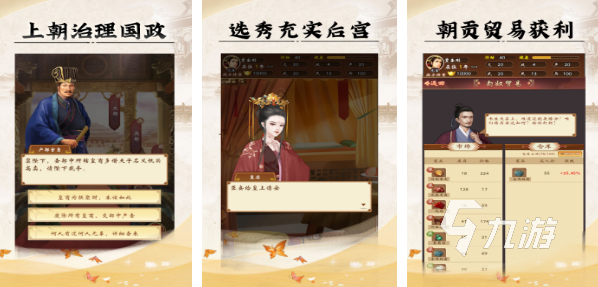 在這里你會扮演各朝各代的天子,你也可以有屬于自己的國號,通過擴充后宮,治理國家和收錄各大名臣,來讓自己的國家變得更加強大,這是你要做的。