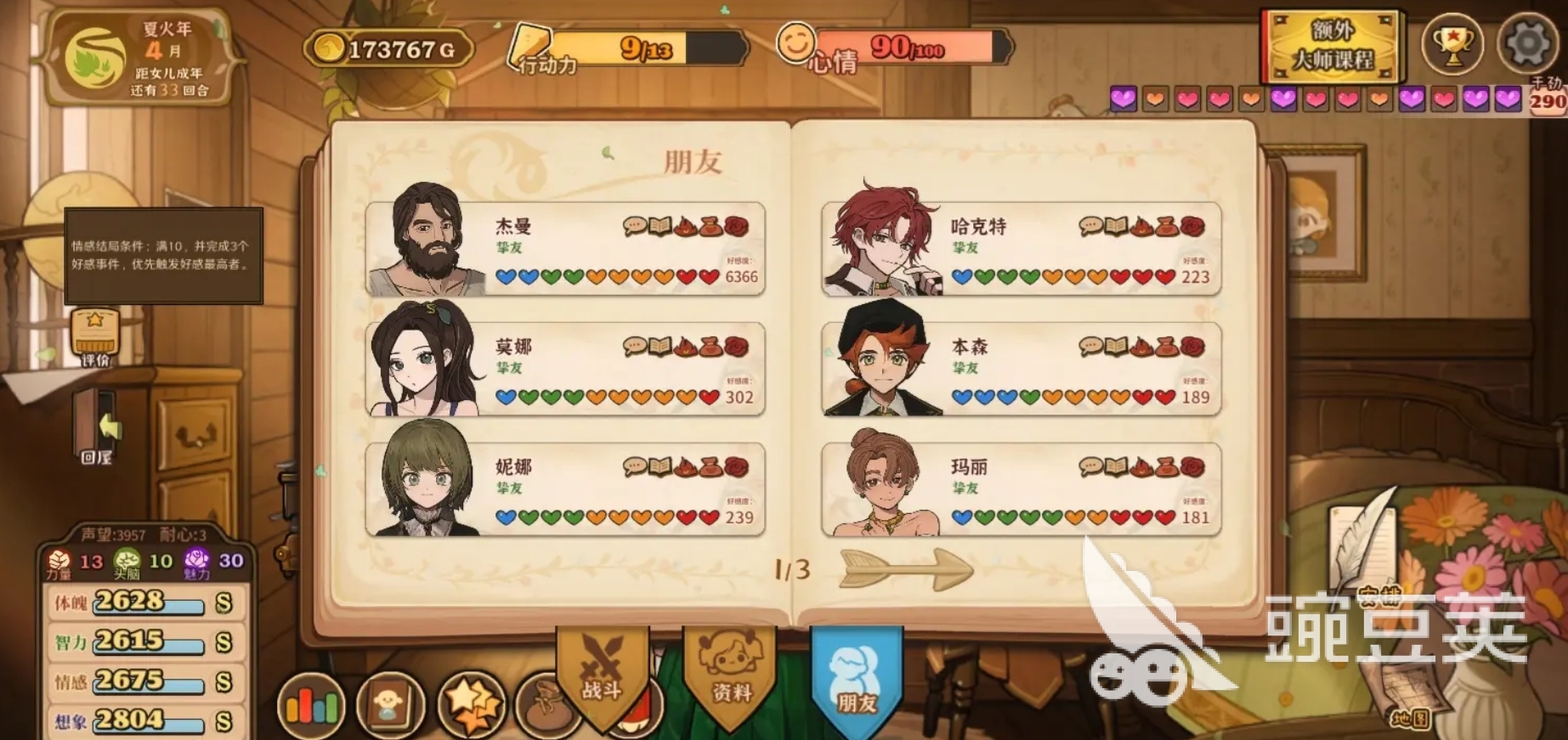每次送對(duì)禮物后,NPC的介紹里也會(huì)同步更新他的喜好信息,并會(huì)給出該禮物的出處,方便各位去尋找,且所有NPC對(duì)女兒的好感值都能在“朋友”中查看,他們頭像旁邊的愛(ài)心會(huì)隨著好感值上升而點(diǎn)亮,全部點(diǎn)亮后還可通過(guò)繼續(xù)贈(zèng)送禮物繼續(xù)提升好感值。倘若各位想快速將某一位NPC的好感刷高,最好的方法就是在找出該NPC所喜歡的禮物后,只去制作那些可重復(fù)獲取的禮物,并把這些禮物都送給對(duì)方。