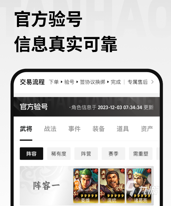 探號是靈犀互娛旗下的APP,專門為玩家打造的安全的,合規(guī)的游戲資產(chǎn)交易平臺,所有流程都受到保護,并且還會有售后服務。先支付,后獲得賬號,還提供永久包賠,全方位保障雙方的權(quán)益。